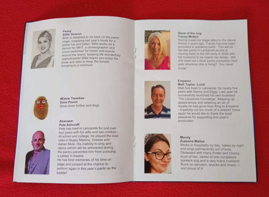This had been the third annual pantomime held in Playa Blanca, and the organisors are grateful for the suppport of various volunteers and, of courses, to very receptive audiences, although do ask those audience members not to throw food at the actors. It is an amateur performance after all,… and the actors would only throw it back.