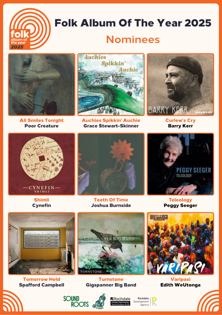 The Folk Album of the Year Award is supported by Rochdale Development Agency and forms a key part of Rochdale’s 2026 Town of Culture celebrations.