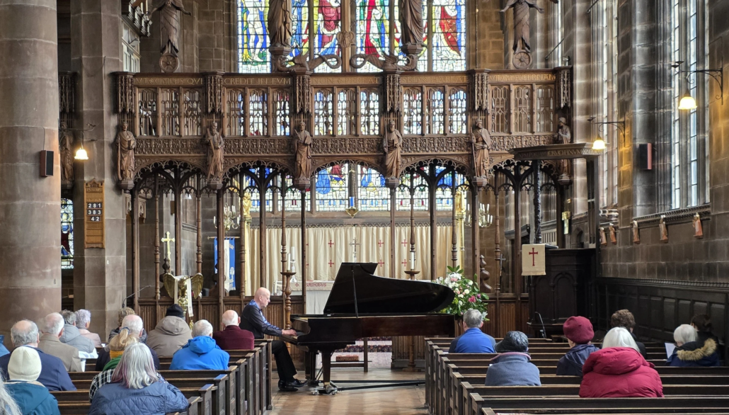 The 1,174th recital since taking over from the council in 2001 was entirely written and performed by a living composer. Born and bred in Cheshire, Adrian Lord studied at the Royal Northern College Of Music and the Colchester Institute School of Music. However, his late father was born and bred in Milnrow and attended Rochdale Grammar School, which perhaps grants the son with token Rochdale citizenship? This charming recital, played from memory with genial introductions certainly endeared him to this Rochdale audience at St Mary in the Baum.