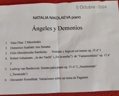 Natalia played three of his sonatas, and these also carried Angels and Demons side by side, leaving the audience continually looking out for the demons and then being gathered back in by the angels, a theme Natalia´s style reflected throughout the rest of the evening.